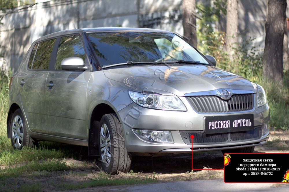 Защитная сетка Русская Артель переднего бампера для Skoda Fabia II 2010-2014. Артикул SBSF-046702